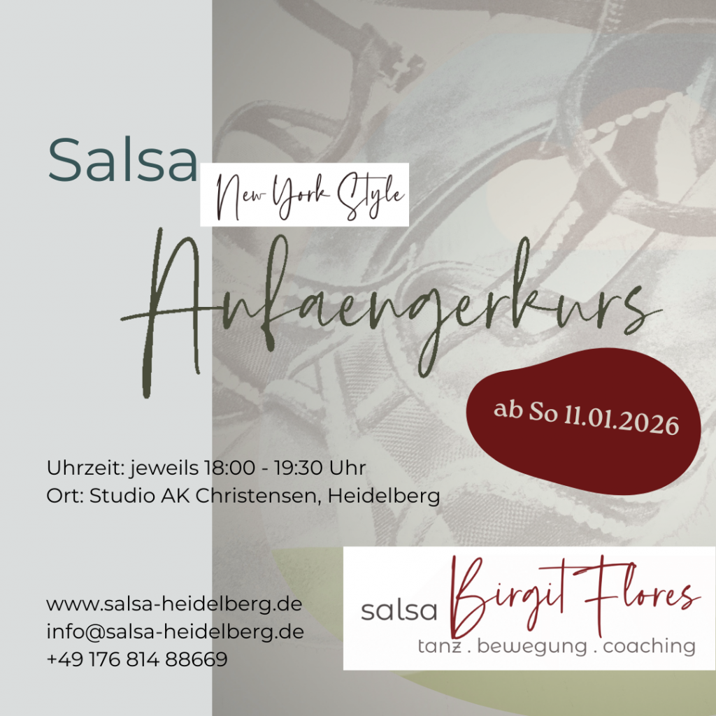 Am Sonntag, den 11.01.2026 startet der neue Salsa Anfängerkurs (New York Style) in Heidelberg. Nähere Infos findest Du hier.